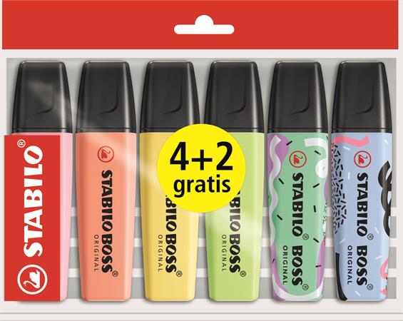 Szövegkiemelő készlet, 2-5 mm, STABILO "Boss Original", 4+2 különböző pasztell szín