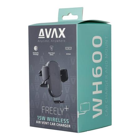 Autós töltő, vezeték nélküli, szellőzőrácsra, AVAX "WH600 Freely+", fekete